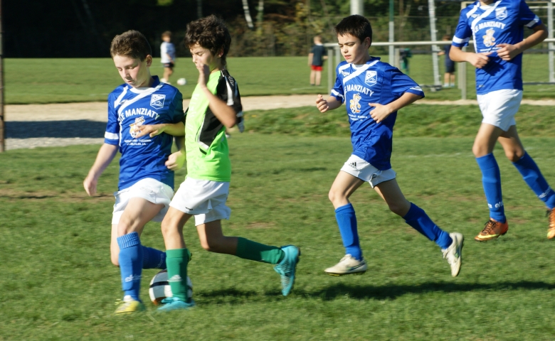 Au retour sur le terrain, les U13 étaient plus que motivés pour revenir au score et faire plaisir aux nombreux parents et supporters présents. Malheureusement, la finition n'était pas au RDV et le gardien manziati a montré de belles choses. La transversale a empêché une nouvelle fois les verts de revenir au score, et les adversaires, qui ont développé un joli jeu également, ont su à nouveau deux fois faire trembler le petit filet pour finir sur un score de 4 à 0.