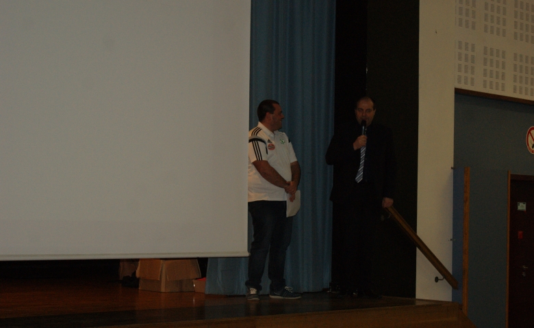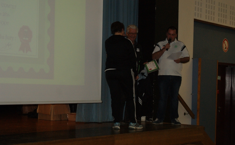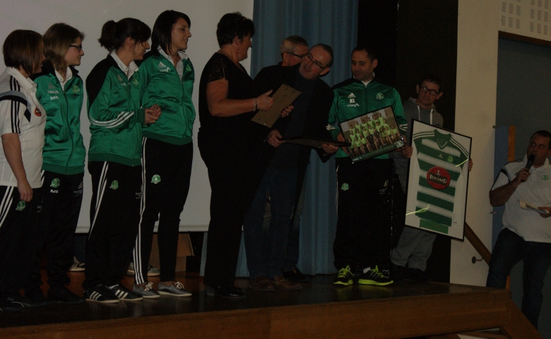 La cérémonie s'est ensuite poursuivit par une remise de récompenses : Maurice COMTET a été remercié pour ses 30 années passées au club (joueur, éducateur, dirigeant, président...) ainsi que Stéphane PERRAUD pour son implication au sein du bureau.