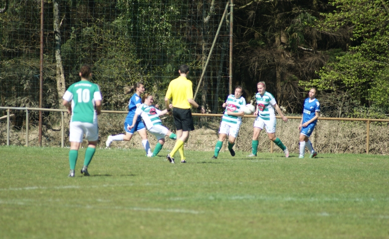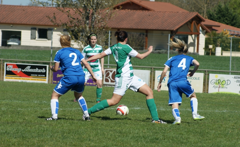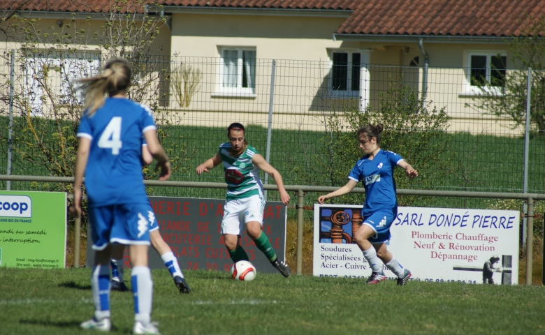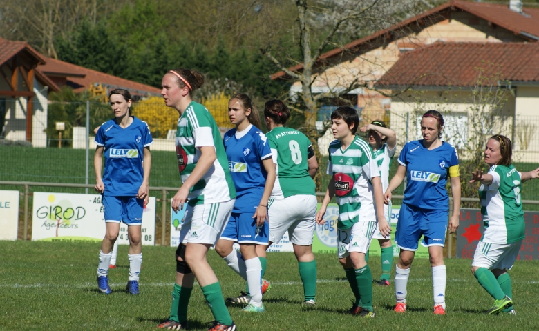 Les 10 premières minutes du match furent totalement à l'avantage des vertes mais 2 erreurs permettaient aux visiteuses de scorer aux 10 ème et 14 ème mn. Après 10 mn de flou les Attignatits réagissaient et se remettaient dans le sens de la marche offensive et trouvaient la faille par Maroute bien servi par Gwen. Mais un manque de concentration et d'agressivité permettait aux bleues de marquer un 3ème but à la 40 ème, puis à la 45 ème l'arbitre expulsait logiquement la gardienne Mel coupable d'une faute hors surface.