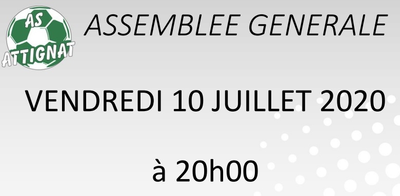L'assemblée générale du club aura lieu le vendredi 10 juillet 2020 au centre culturel d'Attignat à 20h00.