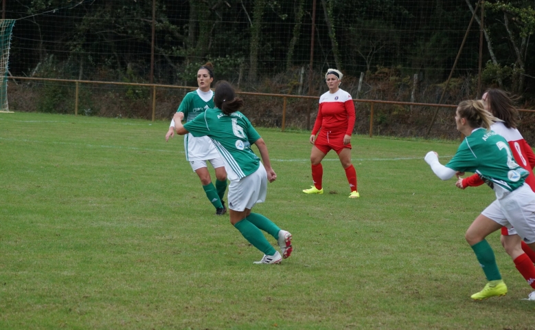 Le début de match est à l’avantage des visiteuses qui mènent rapidement 2 à 0 au bout de 15 min. Dès lors nos vertes se mettent en état de marche et se montrent de plus en plus dangereuses et sont récompensées autour de la demi-heure de jeu sur une frappe de Maroute, 1 à 2. Le score ne bougera plus jusqu’à la mi-temps.