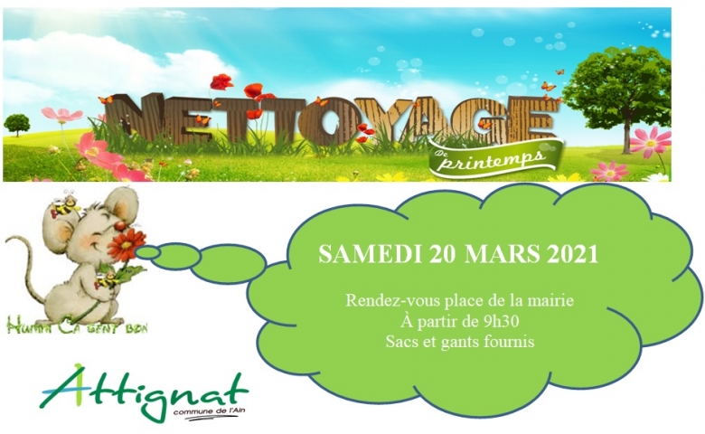 Le club s'associe à la municipalité pour le nettoyage de printemps. Celui-ci aura lieu le samedi 20 mars de 9h30 à 11h30 environ.
